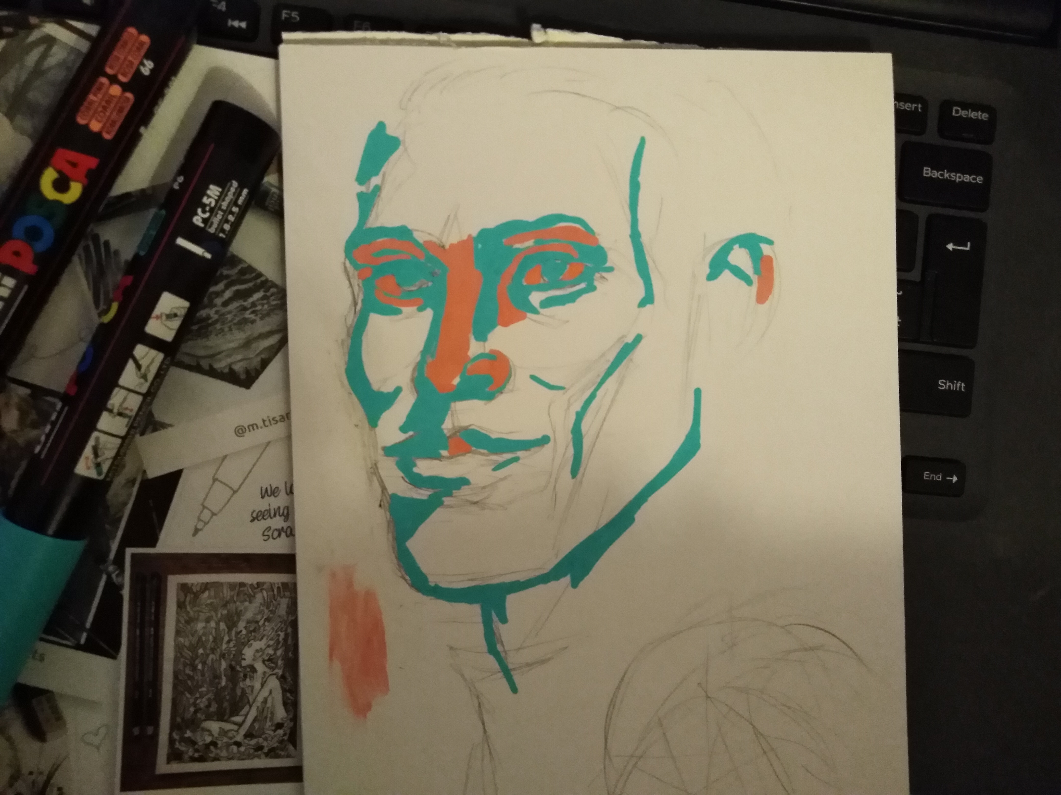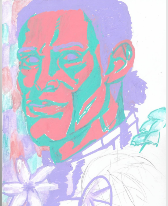 Oliver Caron Al-Asim: knight, tough-as-nails monster hunter, and human ray of sunshine. I think if there’s one character who deserves pastels and flowers, it’s him. Done with Posca markers and a growing, appalled awareness that I was basically drawing a Hawaiian shirt.